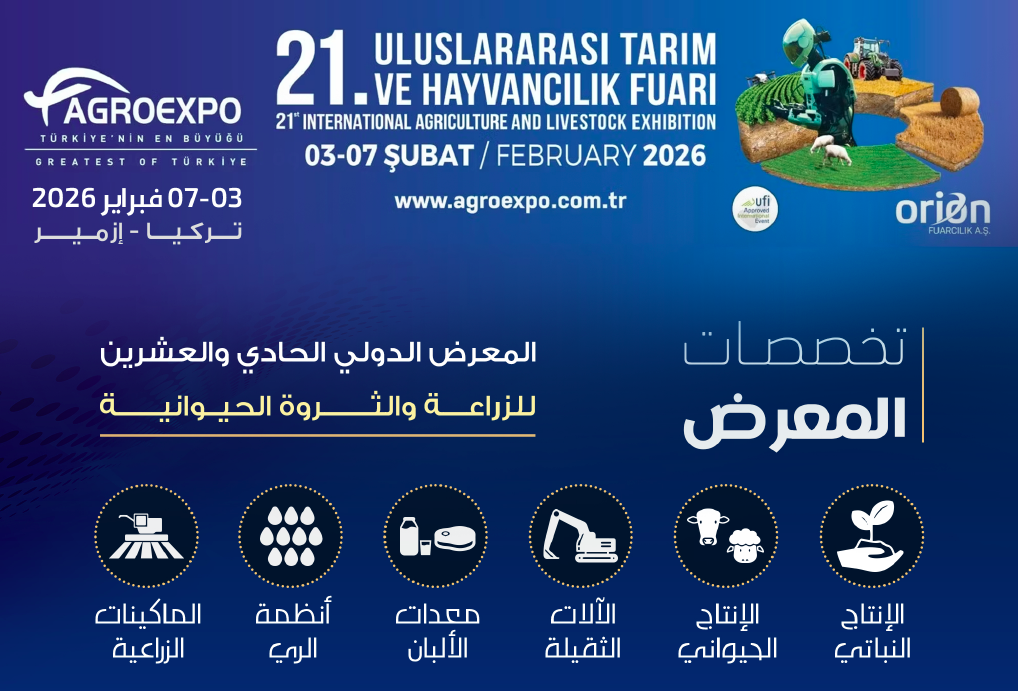 This annual international exhibition is of great importance in the Middle East and Europe, occupying the first position in Turkey and the fourth place at the level of Europe. As it is receiving official attention at the level of agriculture ministers in several countries, as the opening ceremony of the fourteenth edition, That was held in Izmir in February 2022, which was attended by a large number of agriculture ministers and many senior executives in the relevant ministries from several countries: Qatar, Oman, Ireland Kosovo, Romania, Serbia, Sudan, Jordan, Palestine, Russia, Nigeria, Bulgaria and Azerbaijan.